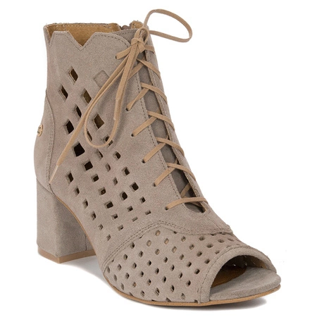 Maciejka Botki kowbojki damskie welurowe ażurowe beżowe