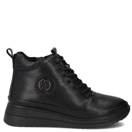 Eksbut Botki Damskie Skórzane Na Platformie Ocieplane Czarne