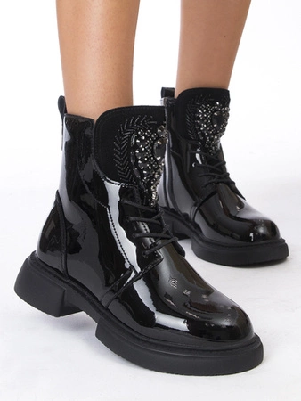 T.Sokolski Botki Damskie Ocieplane Skórzane Czarny Lakier