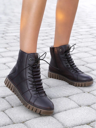 Rieker Botki Damskie Ocieplane Na Platformie Brown