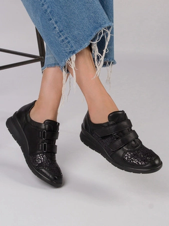 Rieker Półbuty damskie skórzane na rzepy Black czarne