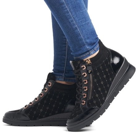 Remonte Półbuty Damskie Skórzane Ocieplane Black Combination