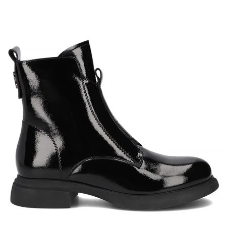 Boccato Botki Damskie Lakierowane Botki Wsuwane Czarne 049-1738SA-102T