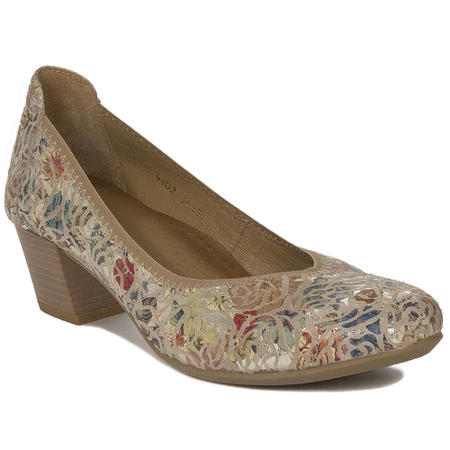 Bioeco Czółenka Damskie Skórzane Na Obcasie Beżowe