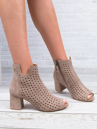 Maciejka Botki damskie skórzane ażurowe beżowe