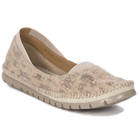 Maciejka Skórzane Welurowe Baleriny Damskie z Migdałowym Noskiem Beżowe 04100-42/00-8