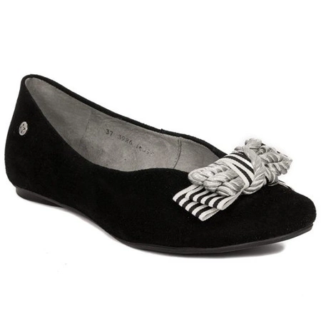 Maciejka Baleriny damskie skórzane z kokardą Czarne