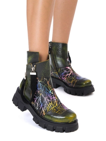Boccato Botki Damskie Skórzane Ocieplane Khaki
