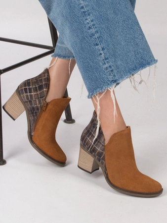 Maciejka Botki Damskie Skórzane Brąz + Bordo