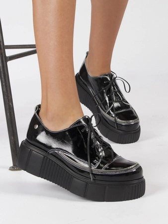 S.Barski Mokasyny damskie Black Patent czarne lakierowane