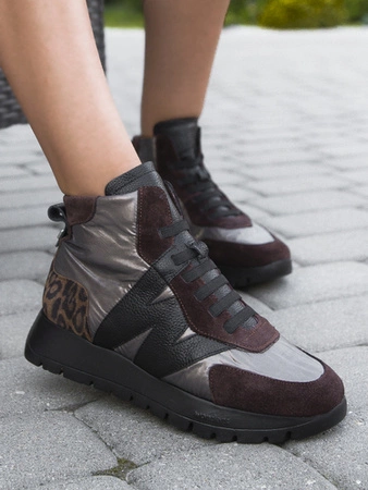 Igi&Co Sneakersy damskie skórzane na platformie brązowe