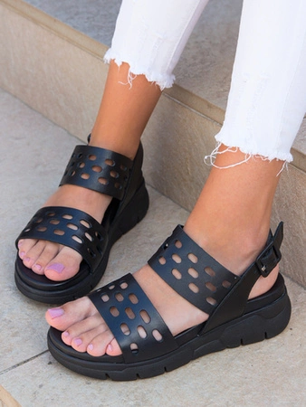 Inuovo Sandały damskie skórzane na platformie Black Czarne