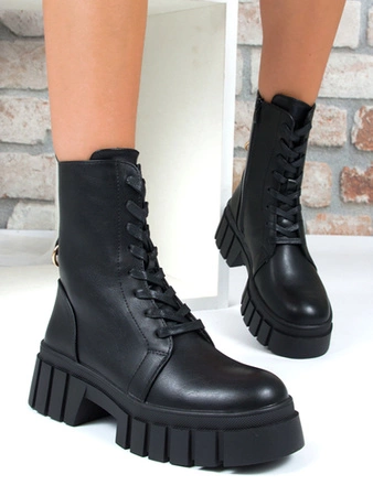 Boccato Botki damskie skórzane ocieplane czarne