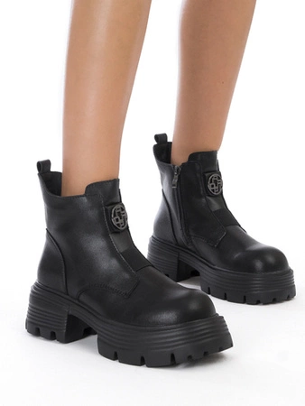 T.Sokolski Botki Damskie Na Platformie Ocieplane Skórzane Czarne