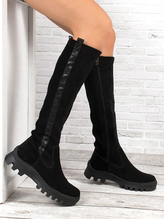 Kozaki damskie Maciejka welurowe Czarne Lico
