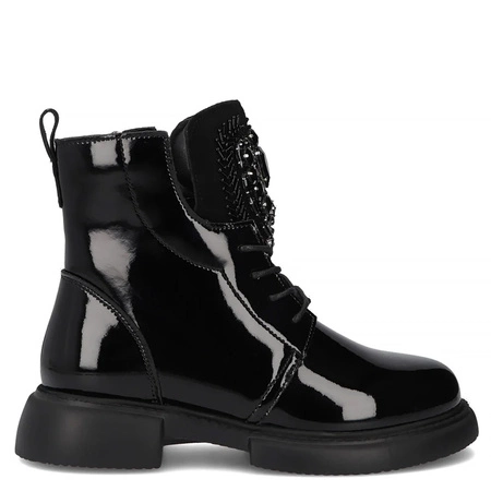 Sokolski Trzewiki Damskie Lakierowane Botki na Suwak i Sznurowane Czarne CH-Z25-90-BLK-L