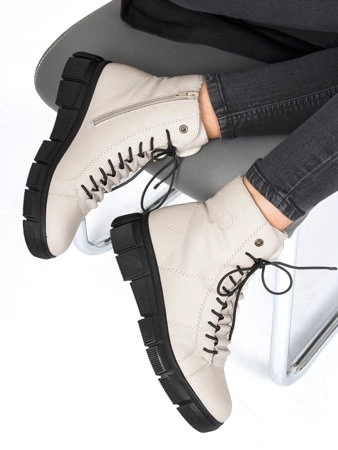 Półbuty damskie Inofio skórzane wsuwane na platformie beż