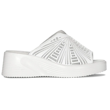 S.Barski Klapki damskie skórzane ażurowe na platformie białe