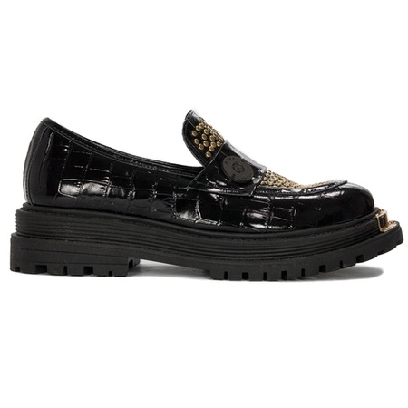 Filippo Półbuty damskie skórzane na platformie i obcasie czarne