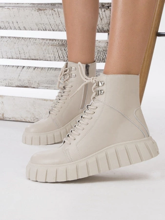 Filippo Botki Damskie Ocieplane Na Platformie Skórzane Beżowe