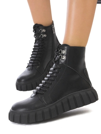 T.Sokolski Botki Damskie Na Platformie Ocieplane Skórzane Czarne