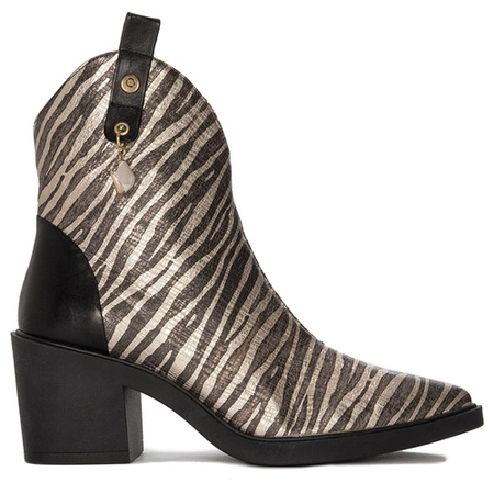 CAFENOIR Botki damskie kowbojki skórzane Nero czarne