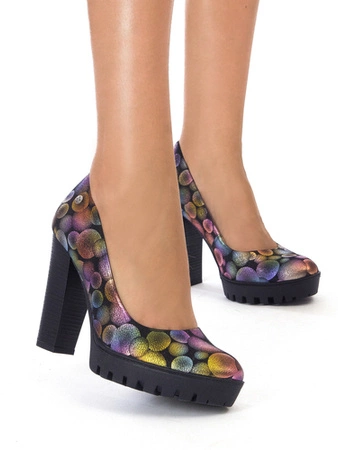 Maciejka Czółenka Damskie Na Słupku Multikolor