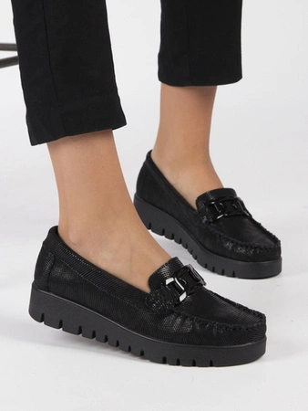 Filippo Półbuty damskie skórzane na platformie i obcasie czarne