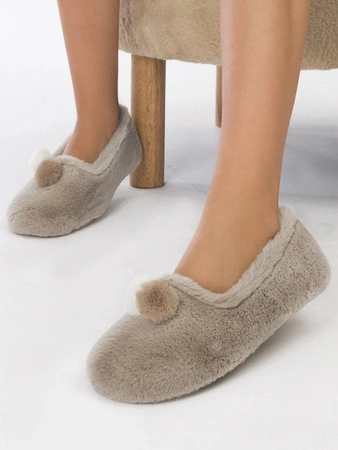 Macarena Kapcie damskie z pomponami Beige beżowe