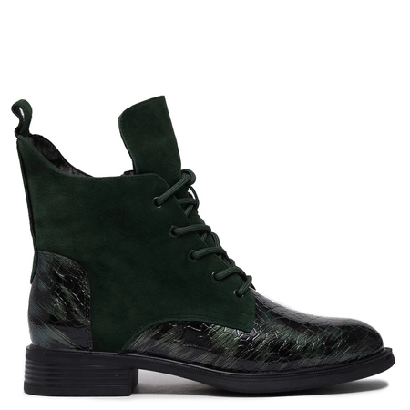 Maciejka Botki Damskie Skórzane Lakierowane Zielone