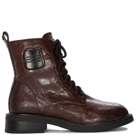 Maciejka Botki Damskie Skórzane Lakierowane Brązowe