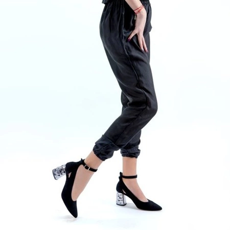 Maciejka Czółenka damskie skórzane na słupku Czarne