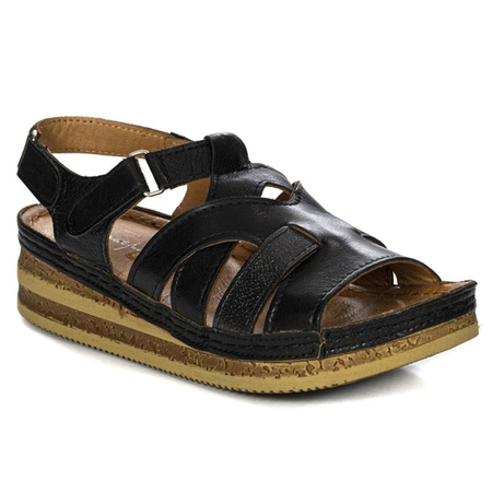 Maciejka Sandały damskie skórzane na rzepy czarne