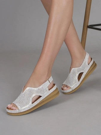 Maciejka Sandały damskie skórzane na rzep srebrne