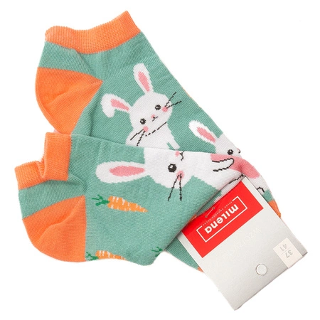 Skarpetki stopki damskie Milena Turkusowo-Pomarańczowe Króliczek