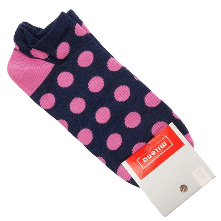 Skarpetki stopki damskie Milena wzorzyste Granatowe Różowe Kropki