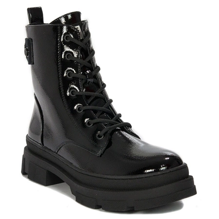 S.Barski Botki damskie na platformie ocieplane lakier Black czarny