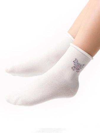 Skarpetki dziecięce dziewczęce Steven Cotton Candy art.066 Ecru Motylek