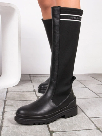U.S.Polo Assn. Kozaki damskie z elastyczną cholewką do kolan Black czarne