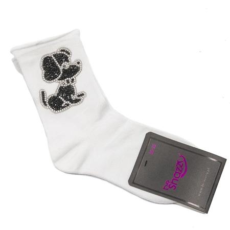 Skarpetki dziecięce Be Snazzy SK-52 Białe Czarny Pies Cekiny