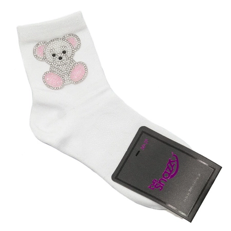 Be Snazzy SK-52 Białe Misio RóżowyDziecięce skarpetki polskiej marki Be Snazzy w kolorze białym ze wzorem: Misio Różowy z perełkami i kryształkami na ściągaczu. Skarpetki wykonano z rozciągliwego materiału. Idealne również na prezent na różne okazje. Skład materiałowy: 73% bawełna, 23% poliamid, 4% elastan.