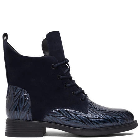 Artiker Botki Skórzane Trzewiki Zamek i Sznurowanie Granatowe 57C0192