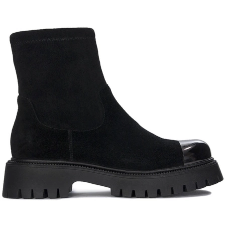 DBT6406/24 BKPrzedstawiamy najnowszy model botków damskich marki Filippo. Cholewka wykonana została z wysokiej jakości skóry naturalnej zamszowej w kolorze czarnym "Black". Okrągły nosek daje palcom dużo swobody i pozwala na wygodne ułożenie. Wnętrze oraz wkładka wykonane są z miękkiego i ciepłego polaru. Model na platformie o wysokości 4 cm w miejscu obcasa oraz 2.5 cm z przodu. Zapięcie na suwak ułatwia zmianę obuwia. Idealnie uzupełnią wiele oryginalnych stylizacji. Filippo to marka, której kolekcje przeznaczone są dla kobiet z klasą, którym zależy na tym, aby zawsze prezentować się perfekcyjnie bez względu na okazję. Tęgość określona przez producenta: G. Jakość: I.