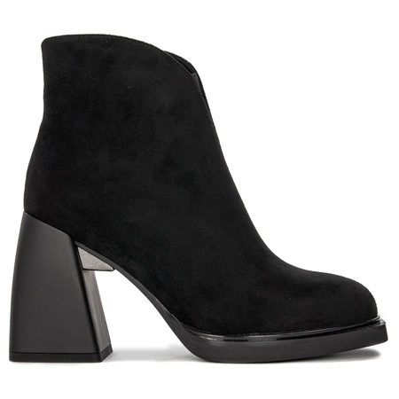 DBT4113/22 BKFilippo to marka, której kolekcje przeznaczone są dla kobiet z klasą, którym zależy na tym, aby zawsze prezentować się perfekcyjnie bez względu na okazję. Przedstawiamy najnowszy model tej marki na sezon jesienno-zimowy. Miękka cholewka wykonana została z wysokiej jakości tworzywa wysokogatunkowego w kolorze czarnym. Okrągły nosek daje palcom dużo swobody i pozwala na wygodne ułożenie. Boczny zamek ułatwia zmianę obuwia, a sznurowadła pozwalają lepiej dopasować cholewkę do potrzeb. Miękkie i wygodne wnętrze wykonane z ciepłego polaru delikatnie otula i ogrzewa stopy oraz daje poczucie komfortu w chłodniejsze dni. Na szczególną uwagę w tym modelu zasługuje piękny, 9-cm obcas w kolorze czarnym, który dzięki swojej wysokości znacznie wysmukla nogę nadając piękny kształt całej sylwetce. Tęgość - G, obwód cholewki wynosi 27 cm.