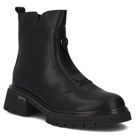 Poznaj model DBT7148-25-BK – skórzane, ocieplane botki o minimalistycznej linii, które zachwycają detalem i funkcjonalnością. Cholewka z naturalnej skóry (kolor czarny) ma miękkie wykończenie i delikatne przeszycia podkreślające kształt buta. Wzrok przyciąga boczny zamek ułatwiający zakładanie oraz subtelna zawieszka w kształcie serca – drobiazg, który dodaje całości kobiecej lekkości. Okrągły, zamknięty nosek zapewnia swobodę palców, a stabilna, lekko podniesiona platforma z bieżnikiem i blokowym profilem nadaje butom nowoczesny, „city” charakter. Wysokość cholewki ok. 14 cm otula kostkę i dobrze trzyma stopę, a solidna podeszwa z wysokogatunkowego tworzywa pracuje z każdym krokiem.