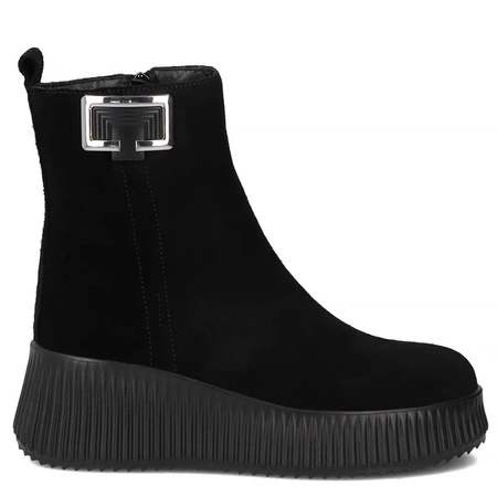 Filippo Skórzane Botki Damskie Na Platformie Zamszowe Czarne DBT6392-25-BK