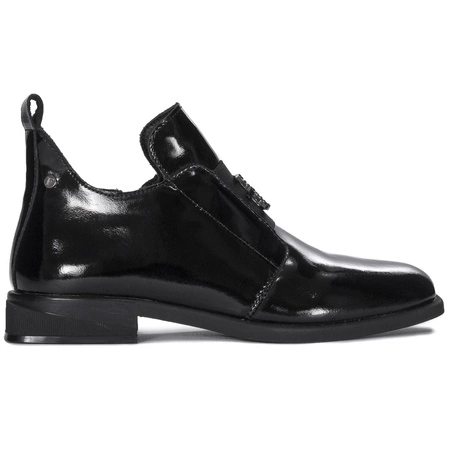 Filippo Skórzane Lakierowane Botki Damskie Na Płaskim Obcasie Czarne DBT4763/25BK