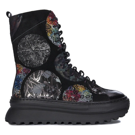 Maciejka Botki Damskie Skórzane Na Platformie Czarne