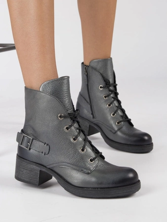 Maciejka Botki Skórzane Na Obcasie Grafitowe 3750S-20/00-3