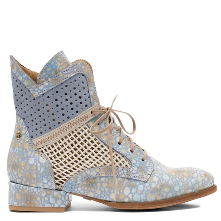 Maciejka Skórzane Botki Ażurowe Trzewiki Niski Obcas Niebiesko-Beżowe 07322-06/00-1